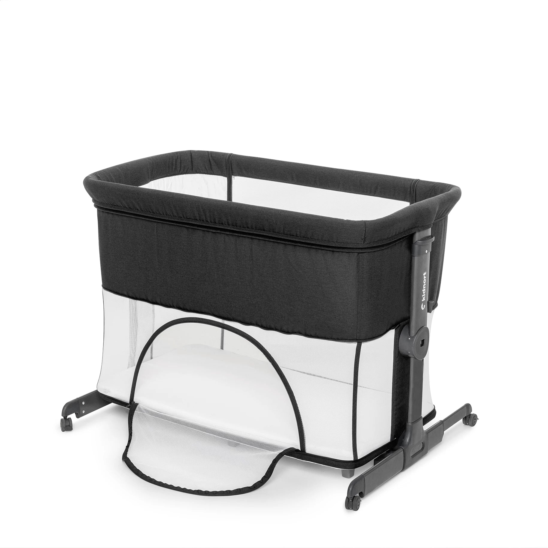 Le gambe pneumatiche consentono di avvicinare la culla al letto dei genitori, garantendo un fissaggio sicuro. Inoltre, quattro ruote con freno facilitano lo spostamento della culla e la bloccano saldamente in posizione, aumentandone il comfort e la funzionalità.