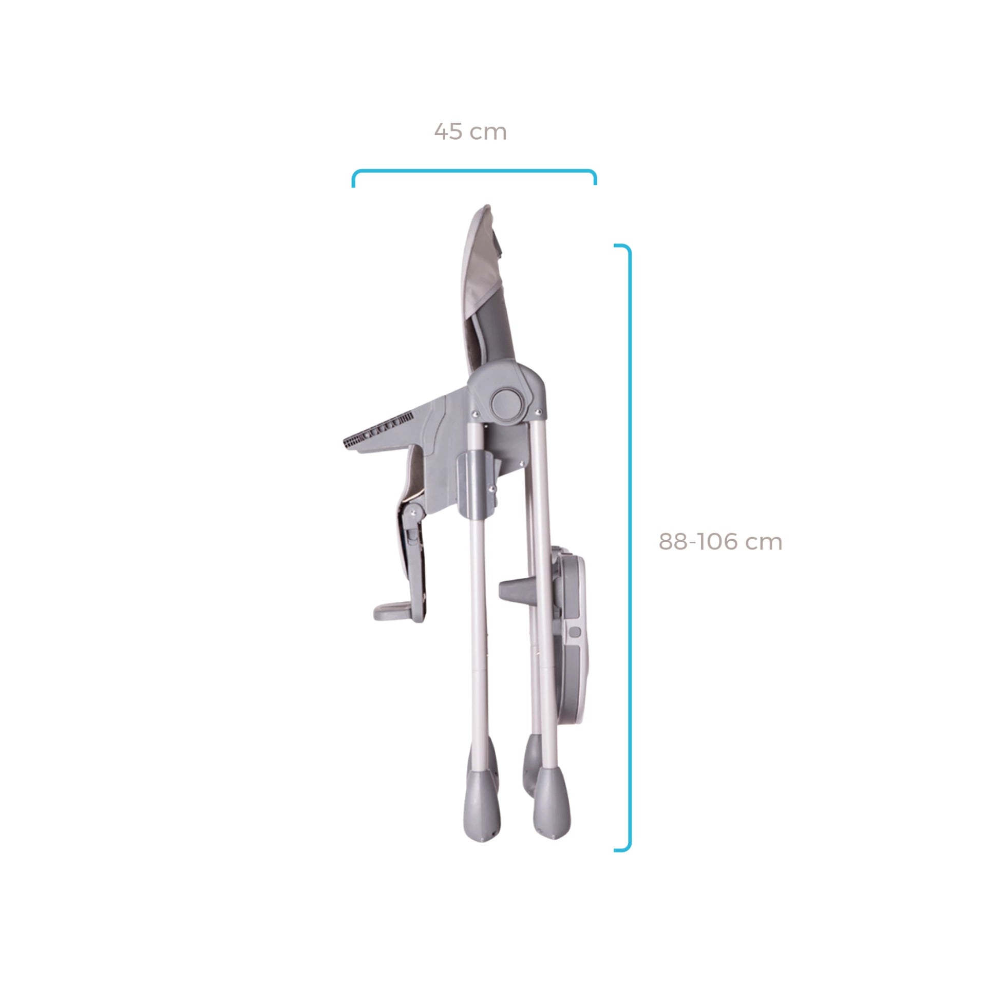 La sedia offre sei regolazioni in altezza, consentendo un facile adattamento alle diverse altezze del tavolo e alle esigenze del bambino. Questo garantisce condizioni ottimali per mangiare e comfort sia per il bambino che per chi si prende cura di lui.